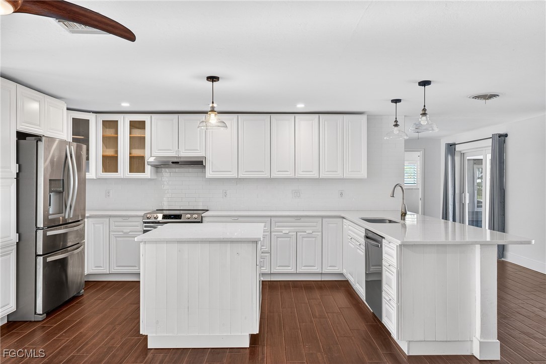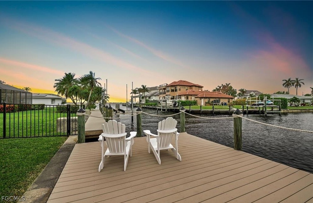 DIRECT GULF ACCESS Pool Home with Intersecting Canal and River Views on a DEEP WATER CANAL for worry-free low tide conditions! Located on the riverside of McGregor Boulevard, this remodeled pool home has a newer roof, impact-rated windows and sliding glass doors, and a boat dock with lift in place. The single-story residence offers 4 bedrooms and 3 updated bathrooms, including two primary suites ideal for flexible living arrangements or guest accommodations. Kitchen is equipped with quartz countertops, custom wood cabinetry, stainless steel appliances, and recessed lighting, designed for both daily use and entertaining. Fresh paint, new doors and trim work, plantation shutters, and wood-look tile flooring throughout. Outdoor living is well-appointed with a saltwater pool resurfaced in 2018, new patio pavers (2023), two covered patio areas, and a fenced yard. Boaters will appreciate the 468 SF composite-wood dock with 7,000# boat lift (2019), offering direct access to the Caloosahatchee River. Additional updates include a metal roof (2020), new electric panel (2018), A/C system (2022), plumbing (2022) and privacy fence (2021) on the 0.33ac lot. Conveniently situated near shopping, dining, boating, and Gulf beaches, this property combines modern updates with a prime waterfront location in one of Southwest Florida’s most established and desirable communities! Plus, there are NO HOA fees or rules so you can live your best life in peace! Ask your agent for The Full Scoop—then schedule your showing today!