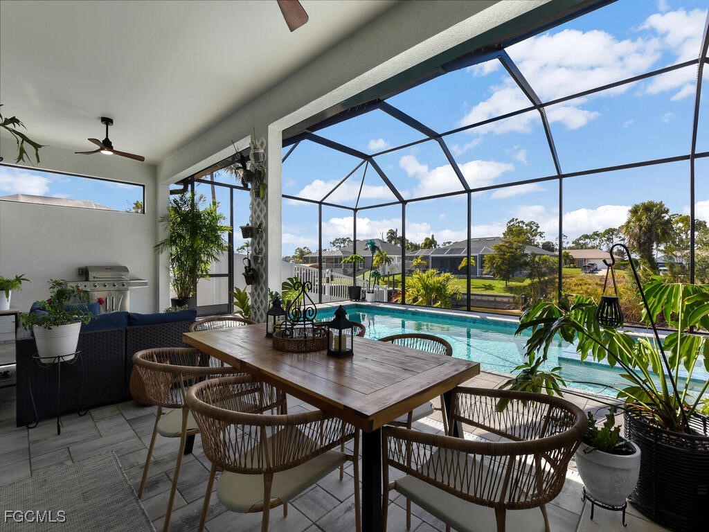 Perfectly positioned on a Gulf-access canal, the home features 4 generously sized bedrooms, a spacious den/study easily adaptable as a 5th bedroom, and 3 full bathrooms. The expansive living areas are highlighted by impact-resistant 90-degree zero-corner sliding pocket doors, seamlessly blending indoor and outdoor living.