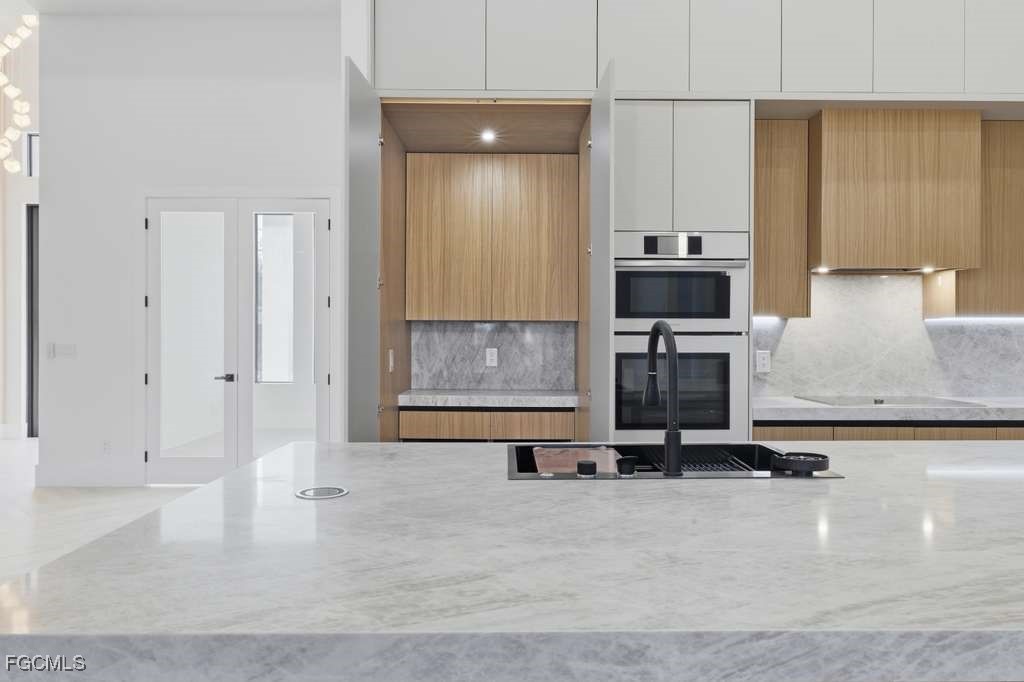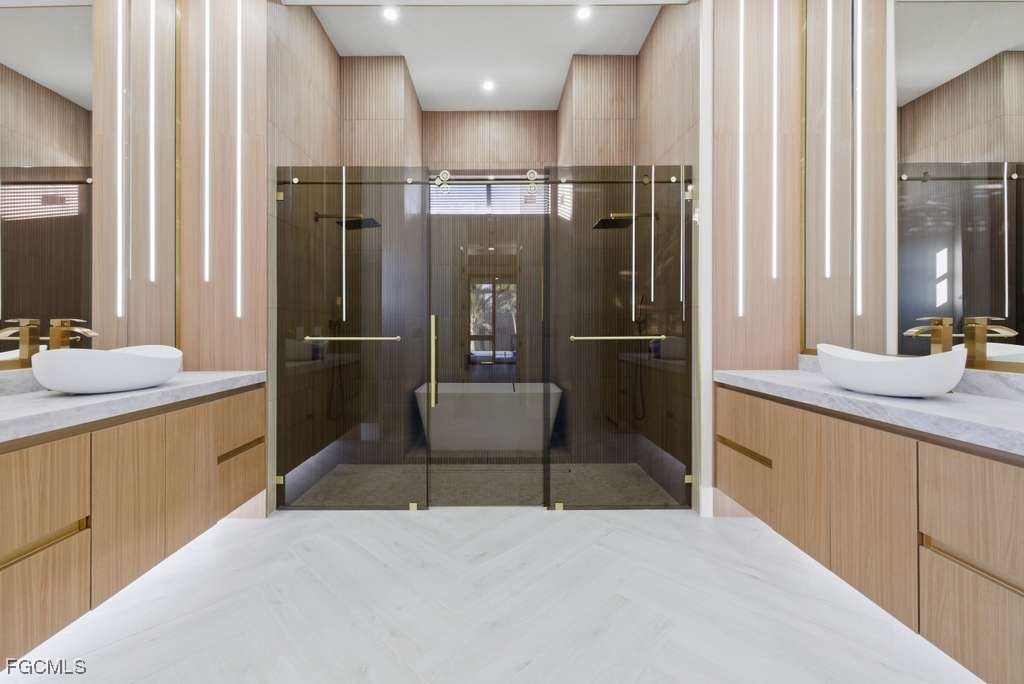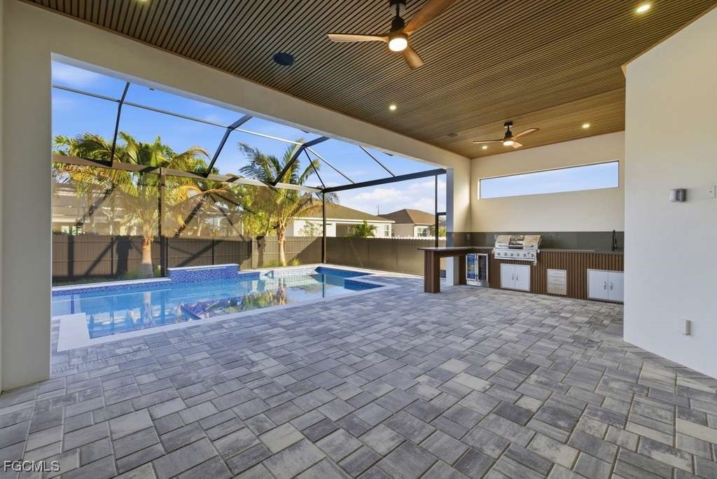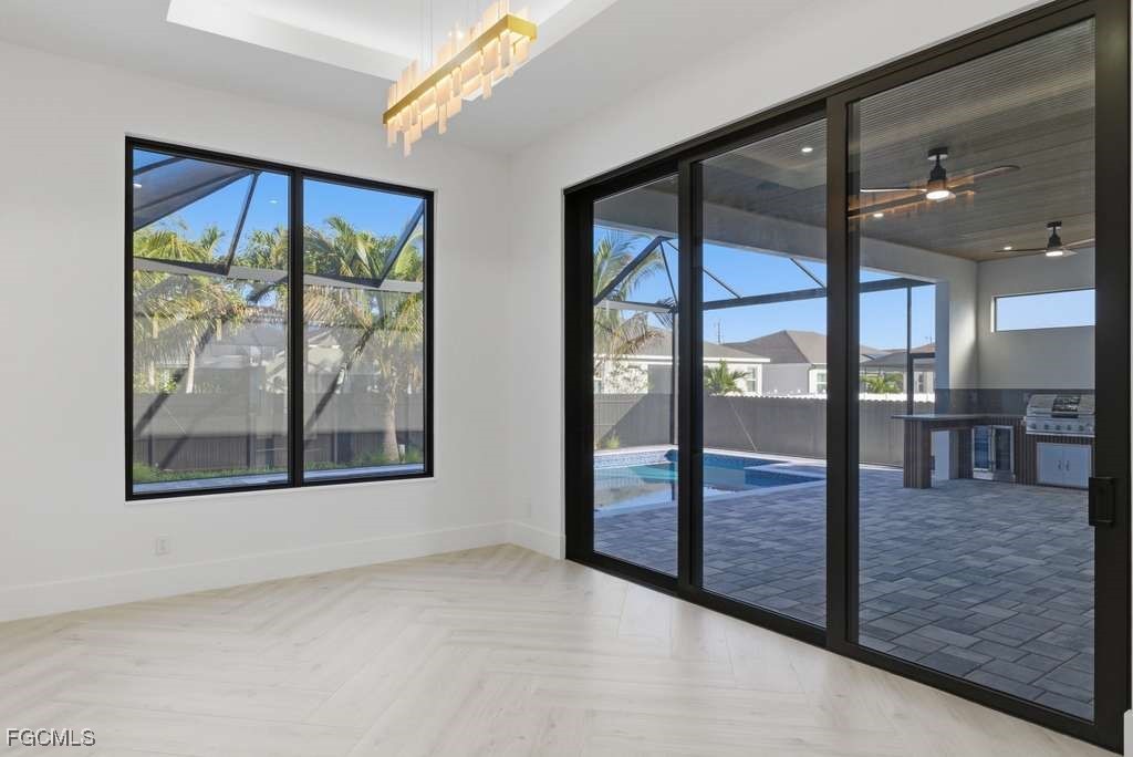 Spectacular modern residence with open concept and luxury finishes. The property has 10-foot-high impact windows and doors, which maximize natural light and provide security and efficiency. It also has 2,766 sq ft of living area and 4,111 sq ft of total area. This property has 2 master suites, 2 additional rooms also an independent office, ideal for remote work or private study. It offers 3 full bathrooms, designed with contemporary finishes. The kitchen has a modern design with state-of-the-art appliances, cabinets to the ceiling and luxury lamps, perfectly integrating into the social area thanks to its open concept. The outdoor area is ideal for entertainment, with pool and spa, heater, salt system and an intelligent system that allows you to regulate the temperature of the pool from the phone. In addition, it has a screen and fence for greater comfort. It also includes glass panels at the front of the house which gives it a unique and elegant style, security camera system around it, integrated sound system inside and outside, and fully paid assessment, offering peace of mind and added value. A residence that combines design, technology and comfort, perfect for those looking for a modern and sophisticated lifestyle. High-level residence that is better appreciated in person. Schedule your private show and discover every luxury detail!!