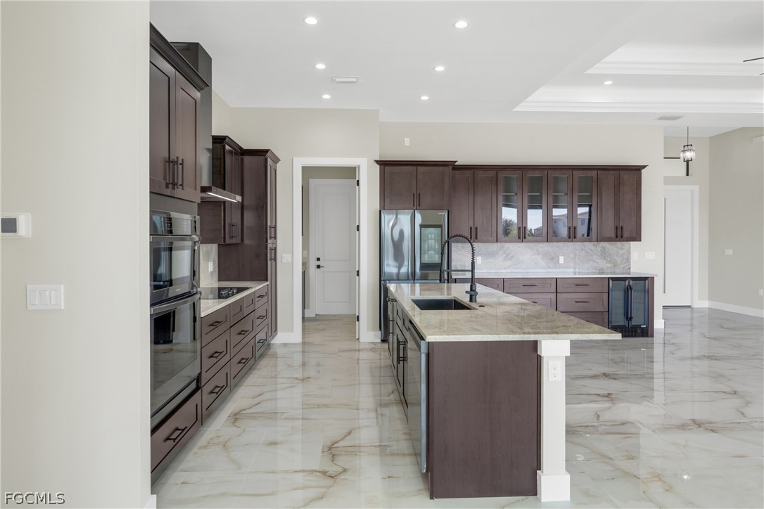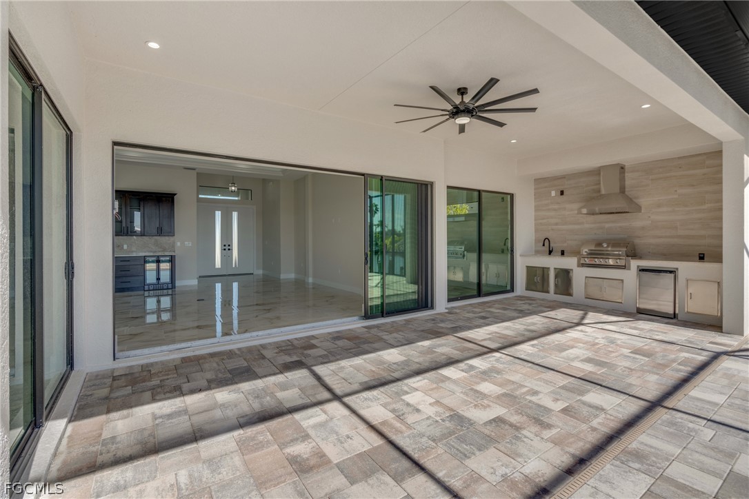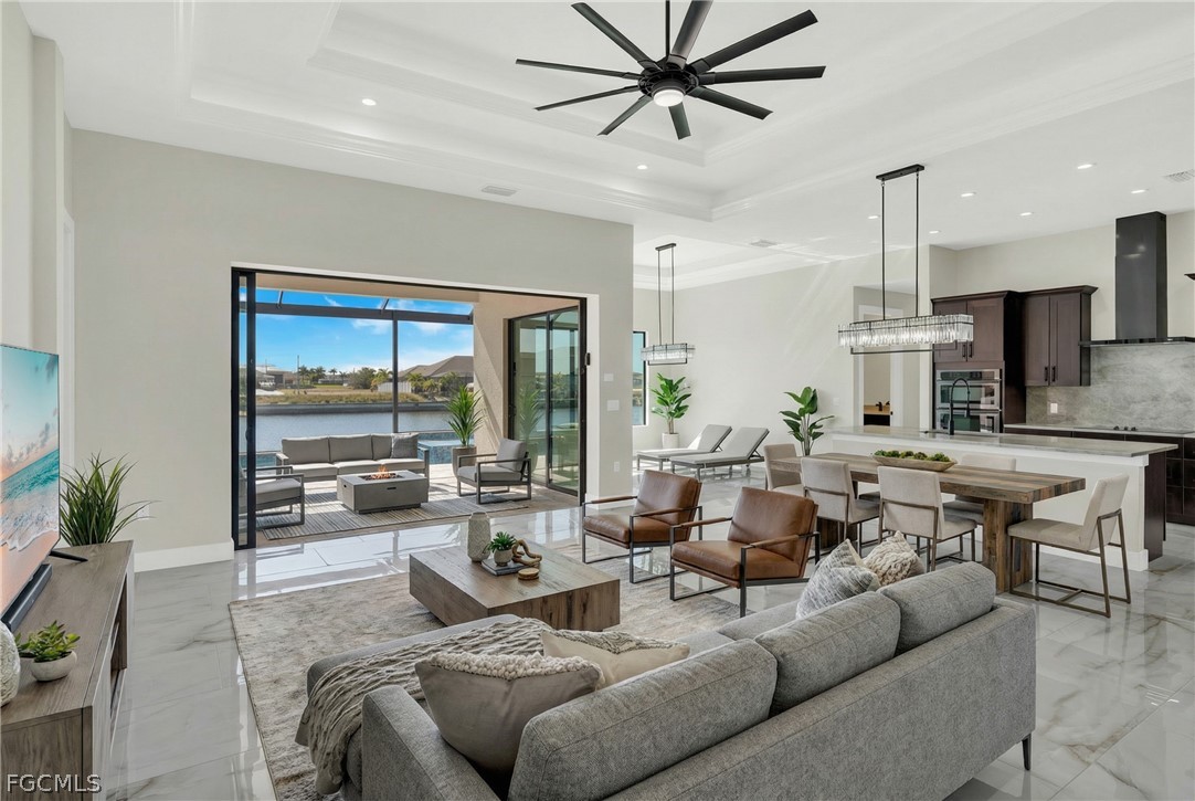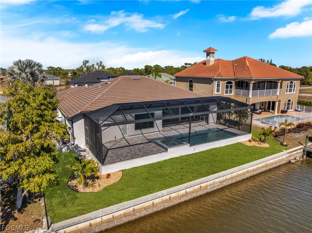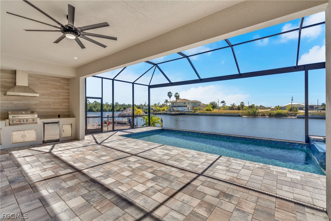 Welcome to 4114 NW 33rd Lane—a coastal retreat showcasing a tile roof, 3 bedrooms plus a versatile den, 2 bathrooms, and an expansive 3-car garage. Set along a 260-foot-wide canal with direct, bridge-free access to the Gulf, this home offers an extraordinary waterfront lifestyle. Step inside to discover an open-concept design enhanced by upgraded large-format tile flooring and abundant natural light. The gourmet kitchen is a culinary enthusiast’s dream, boasting rich espresso cabinetry, upgraded countertops, a wine bar, and a smart refrigerator. A spacious island seamlessly transitions to the living and dining areas, making entertaining effortless. Three sets of sliding glass doors connect indoor living to the oversized extended pool lanai, where you’ll find a custom outdoor kitchen, picture screens, a spa, and a sparkling pool—all perfect for soaking up the Florida sunshine in privacy and style. The master suite is a tranquil haven, featuring two walk-in closets, dual sinks, and an oversized walk-in shower. With its wide canal frontage, no-bridges Gulf access, and prime location near shopping, dining, and recreation, this home is ideal for both personal enjoyment and vacation rental investment. Experience the best of Cape Coral living in this move-in-ready waterfront gem—your Florida dream awaits!