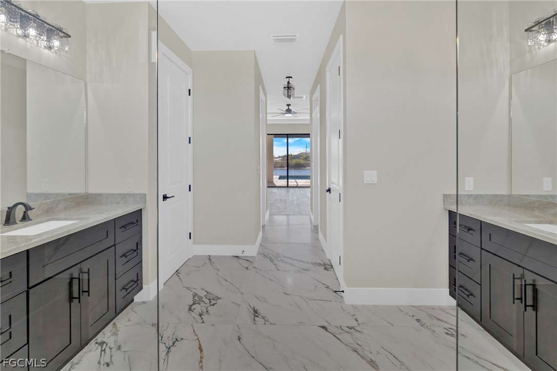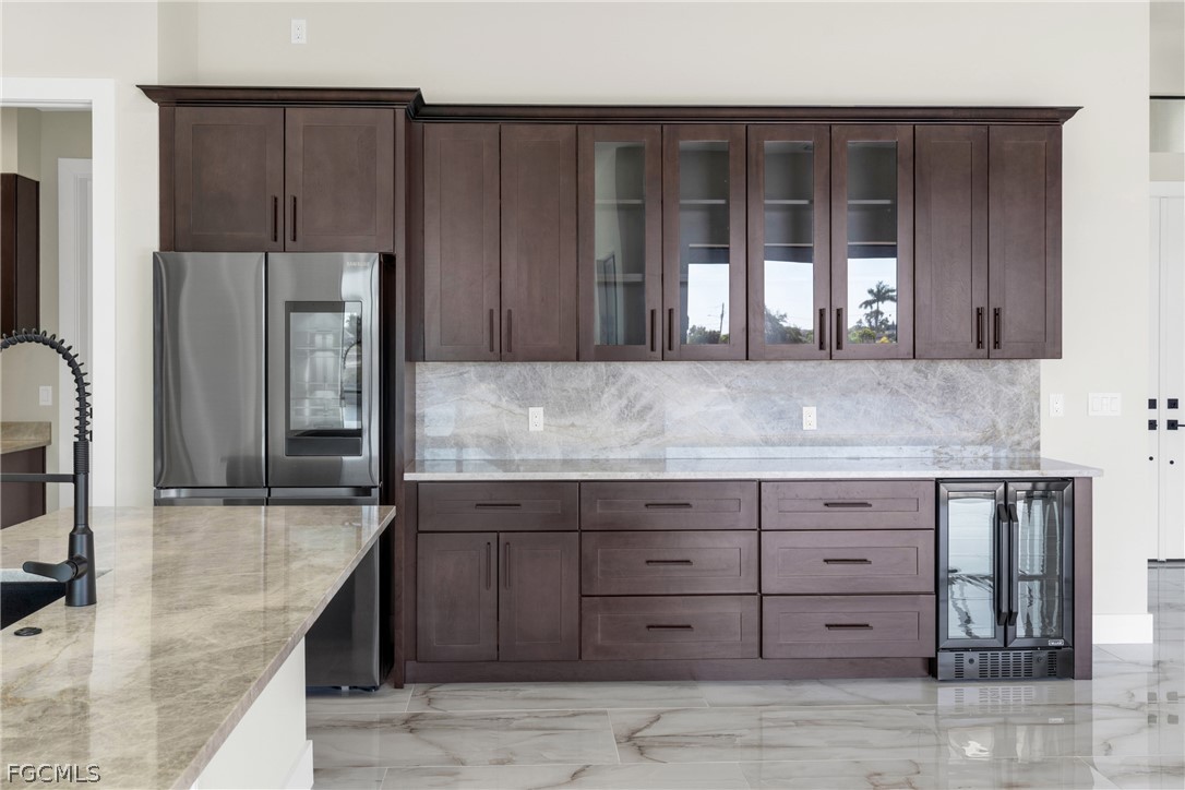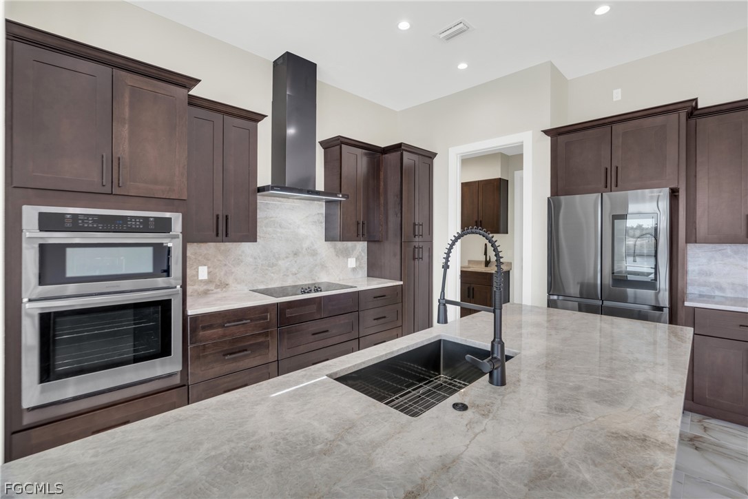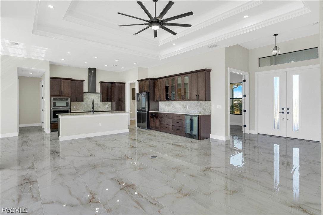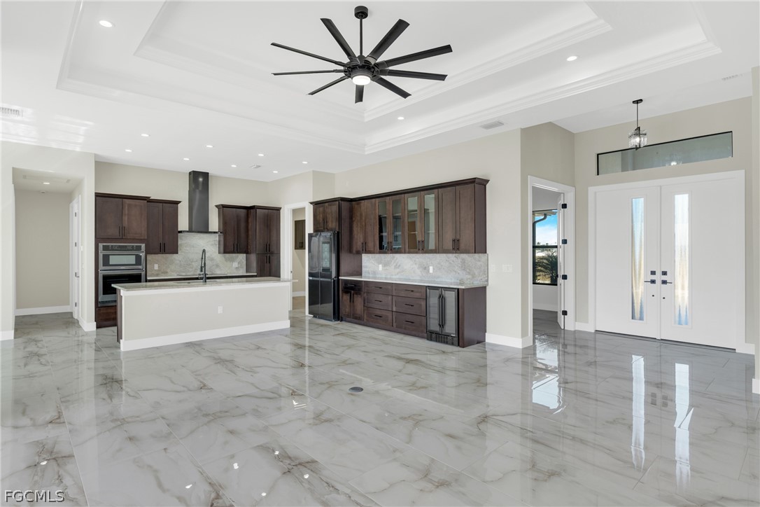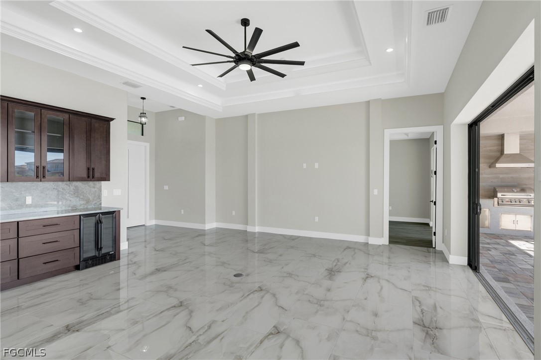 Welcome to 4114 NW 33rd Lane—a coastal retreat showcasing a tile roof, 3 bedrooms plus a versatile den, 2 bathrooms, and an expansive 3-car garage. Set along a 260-foot-wide canal with direct, bridge-free access to the Gulf, this home offers an extraordinary waterfront lifestyle. Step inside to discover an open-concept design enhanced by upgraded large-format tile flooring and abundant natural light. The gourmet kitchen is a culinary enthusiast’s dream, boasting rich espresso cabinetry, upgraded countertops, a wine bar, and a smart refrigerator. A spacious island seamlessly transitions to the living and dining areas, making entertaining effortless. Three sets of sliding glass doors connect indoor living to the oversized extended pool lanai, where you’ll find a custom outdoor kitchen, picture screens, a spa, and a sparkling pool—all perfect for soaking up the Florida sunshine in privacy and style. The master suite is a tranquil haven, featuring two walk-in closets, dual sinks, and an oversized walk-in shower. With its wide canal frontage, no-bridges Gulf access, and prime location near shopping, dining, and recreation, this home is ideal for both personal enjoyment and vacation rental investment. Experience the best of Cape Coral living in this move-in-ready waterfront gem—your Florida dream awaits!
