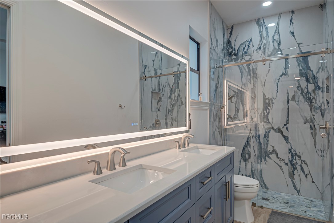 The guest-room has its own full on-suite bathroom, as well as walk in closet. Two bedrooms in addition to the guest room area connected by a very large Jack and Jill bathroom with double sinks. The office/den/bedroom has its full size closet allowing for a 5th bedroom or a full size office/den off the great room.