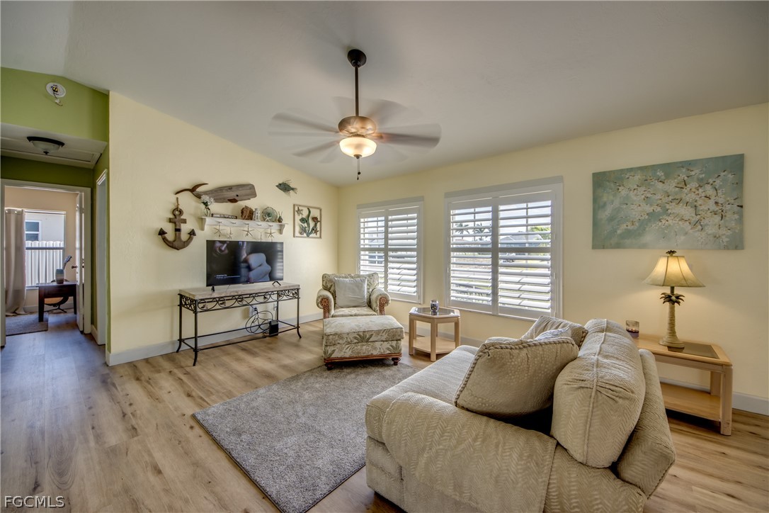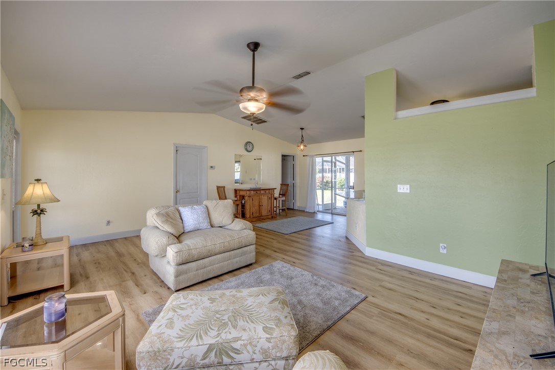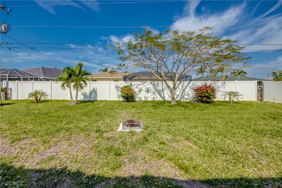 Motivated Seller! Welcome to 4136 SW 9th Pl, a charming 3 bed/2 bath, 2-car garage home not in a flood zone and nestled in the heart of SW Cape Coral. This property is conveniently located near restaurants, shopping, entertainment and some of Florida's finest beaches. This lovely property has so much to offer, renovations in 2023 include a new AC, roof, LV flooring, pavers, garage door opener and fresh outside paint. Additionally, a new Tiki Bar was completed along with a new lanai roof and outside wiring. The split floor plan has a primary bedroom with an ensuite bath and walk-in closet. Both guest bedrooms are ample sized, bright and airy. Light shines through the great room's plantation shutters and creates an open feel throughout. Add in the extra-large fenced backyard and it's perfect for entertaining and enjoying the indoor/outdoor lifestyle SWFL is known for. Priced to sell and being sold furnished!