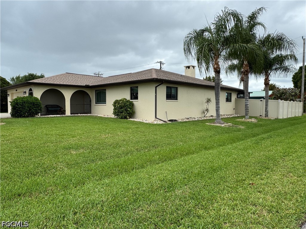 *Wow!***PRICED TO SELL***Attention 1st-Time Home Buyers, Veteran's, Retiree's, Snowbirds & AiRBnB Investors!!!!..The Original owner is selling this well maintained, beautifully landscaped, WESTERN Exposure, HEATED POOL home Featuring: NO FLOOD INSURANCE REQUIRED ~ NO HOA FEE'S ~ NO CDD FEE'S & CITY WATER & SEWER ASSESSMENTS ARE PAID IN FULL ***Immerse yourself into the essence of sunny SW Florida living in this spacious, split-floor plan property boasting 2554 total square feet with 1978 square feet under air. This centrally located gem features: An Over-Sized "9 Vehicle" capacity driveway ~ 3 spacious bedrooms ~ 2 full baths ~ Great room w/ Fireplace ~ Family room ~ Formal dining area & is designed for large gatherings with family & friends. The 2022 Roof ~ 2024 Ruud AC System ~ 2024 Electric panel & 2024 Resurfaced pool ensures peace of mind. Step into the inviting lanai, perfect for entertaining, al fresco dining, grilling out, enjoying cocktails, watching sunsets or just relaxing in the refreshing, expansive, 28' x 14' heated, saltwater pool complete w/ a free-standing Jacuzzi spa. Inside, the kitchen is appointed with real wood cabinets, granite countertops & a Frigidaire stainless steel appliance package. The updated "en-suite' primary bedroom includes a large, private, walk-in shower w/ dual sinks, modern tile, with plenty of closet space. Additional Property features that add to the home's allure include: Impact glass windows ~ Electric Hurricane shutters ~ Tile flooring ~ Meticulously landscaped grounds w/ mature palm tree's ~ Spacious 2 car garage w/ work bench ~ Jacuzzi tub & shower in guest bath & much more....just add your personal cosmetic touches!***Schedule your private tour today and discover why this wonderful home tucked away in a quiet SE Cape Coral neighborhood conveniently located near popular Restaurants, Shopping, Schools & Service Businesses is the epitome of SW Florida living at its finest! ***4 Pt Inspection & Roof Wind Mitigation Certificate's Available***
