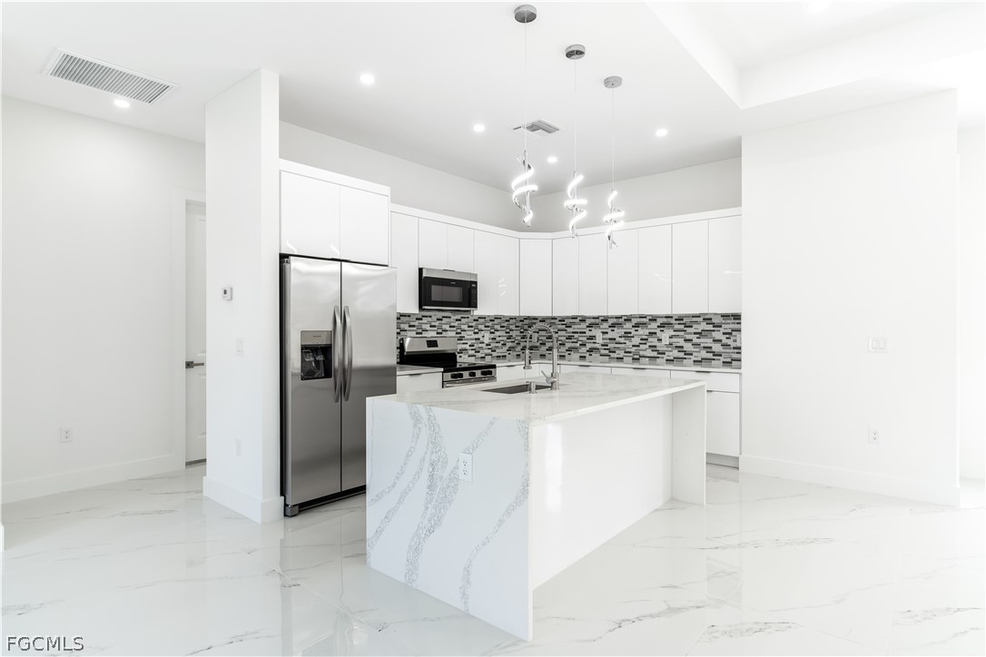 ¡Casa nueva construcción lista para mudarse en la creciente comunidad de Lehigh Acres, Condado de Lee! Esta propiedad de 3 habitaciones + den y 2 baños ofrece techos altos, ventanas y puertas de impacto y un diseño energéticamente eficiente con acabados de calidad artesanal. La cocina cuenta con backsplash personalizado, encimeras modernas y electrodomésticos de acero inoxidable. Disfruta de un césped verde con sistema de aspersores, amplio terreno y estacionamiento adicional en la entrada.