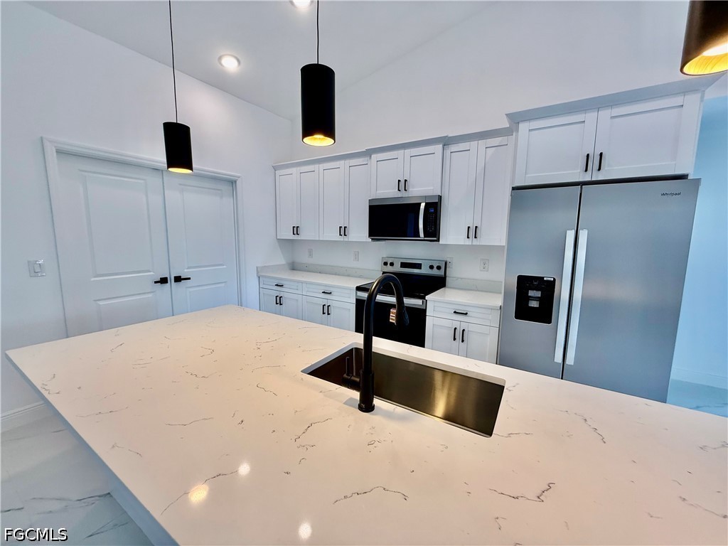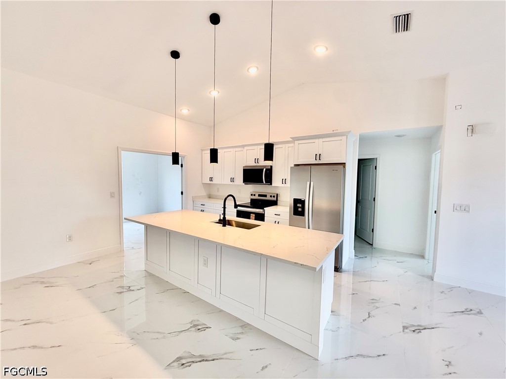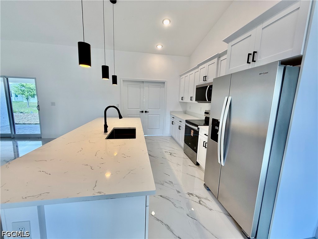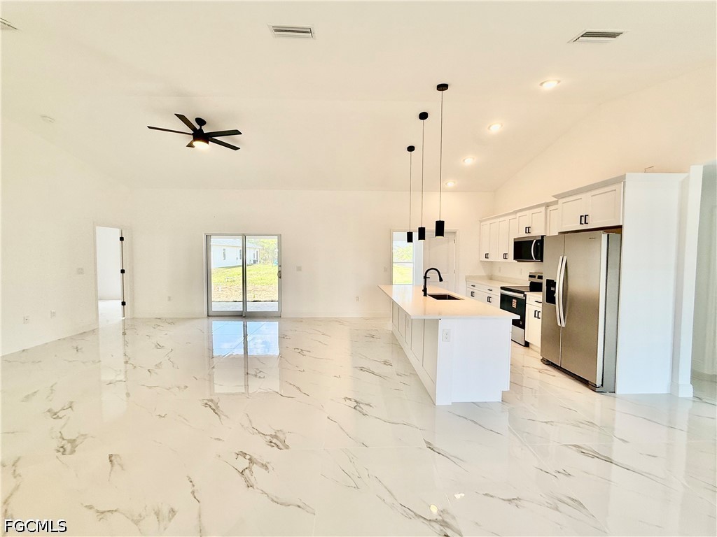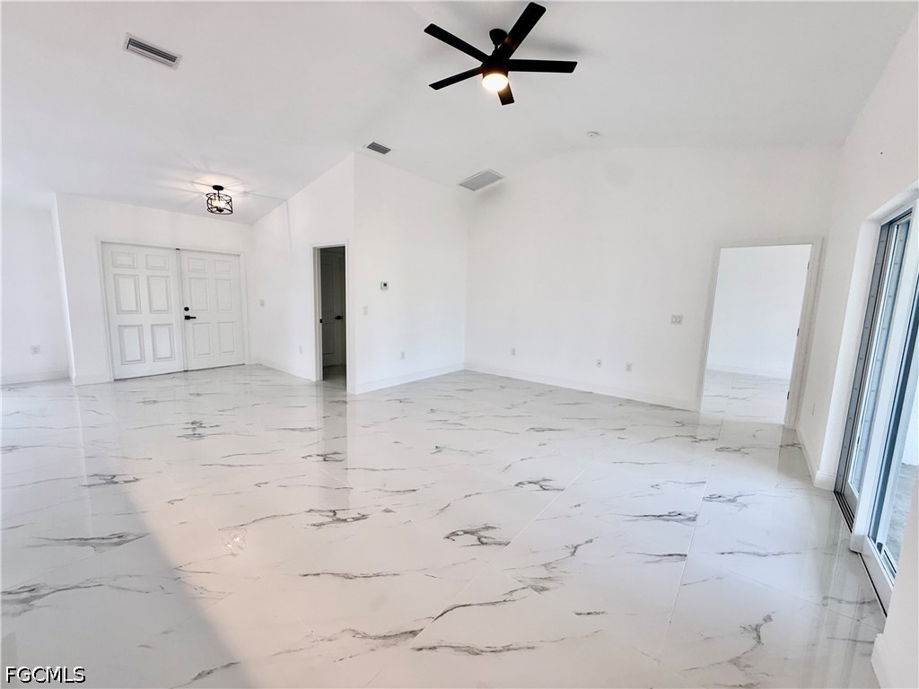 Brand New Home located in Northwest Lehigh on a CORNER LOT on a QUIET LOW TRAFFIC STREET, MOVE IN READY 3 BEDROOM 2 BATH WITH A DEN with a closet that may be used as 4TH BEDROOM. C.O. HAS BEEN ISSUED, double door entry to the den for privacy, 32 X 32 POLISHED PORCELAIN TILE FLOORS THROUGHOUT with 5 inch baseboards, impact resistant windows, covered front porch leads to large great room, cathedral ceilings throughout with tray ceilings in the master bedroom, shaker cabinets with soft close doors and drawers, pendant lighting over breakfast bar, QUARTZ TOPS in kitchen and baths, stainless steel appliance package, pantry, large dining area off of the kitchen, spacious master bedroom with walk in closet, private bath with dual sinks and tiled walk in shower, walk in closet in guest bedroom, indoor laundry room, covered porch in rear overlooking the backyard with plenty of privacy, double garage with auto opener, extra long driveway with plenty of parking, excellent location just minutes to I-75 and Ft Myers and SWFL International Airport. NO FLOOD INSURANCE REQUIRED HERE. LEHIGH IS THE HIGHEST ELEVATION IN LEE COUNTY.