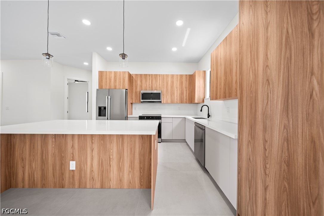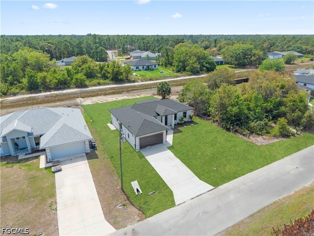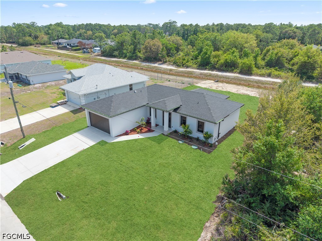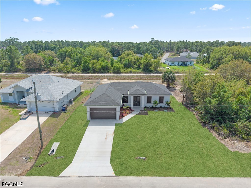 New construction single-family home located in Lehigh Acres. This property offers 4 bedrooms and 2 bathrooms with a functional open layout, tile flooring throughout, and a modern kitchen with stainless steel appliances and a center island.