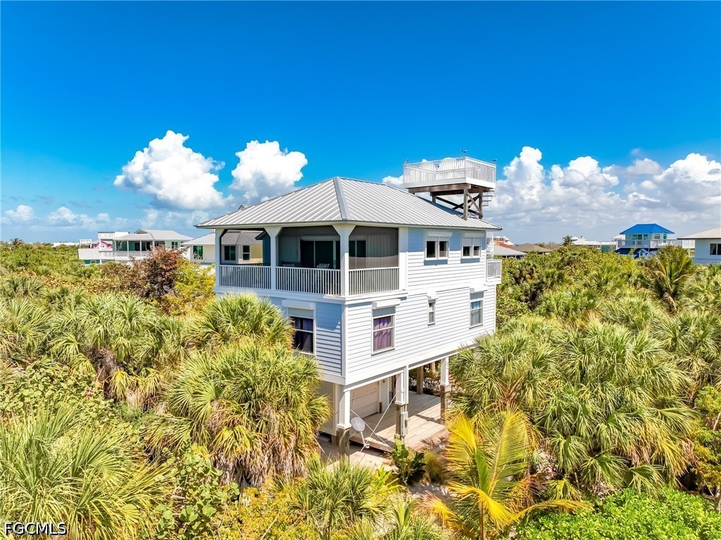 Imagine pulling up in your golf cart, the breeze already shifting as you arrive at a home set high and dry in one of North Captiva's most sought-after neighborhoods. 4510 Oyster Shell Dr is a 3-bedroom, 2.5-bath retreat with an additional 4th sleeping room, designed to make the most of island life. The reverse floorplan captures Gulf views and coastal light from the moment you step into the main living level.