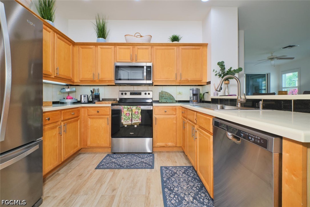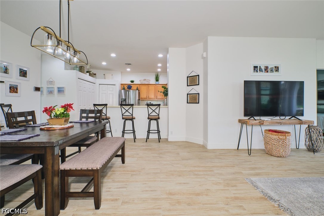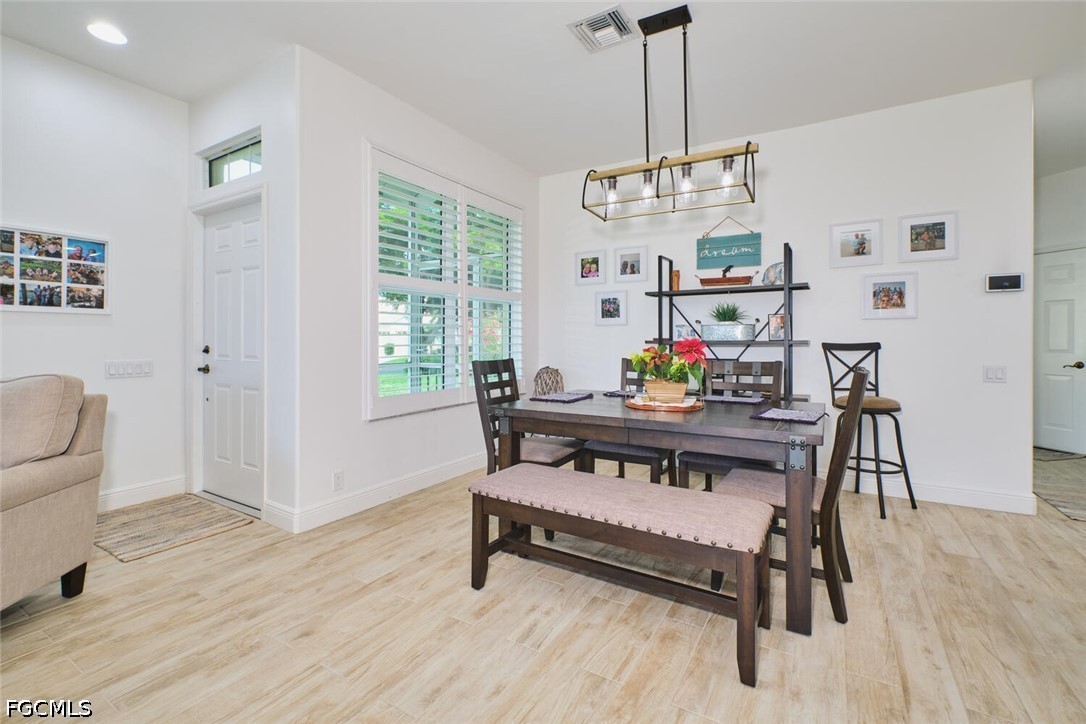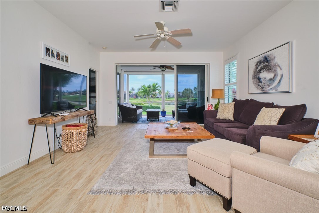This one is a very rare find. One of the only Lake Village attached villas with golf course views looking straight down the 17th fairway and a long lake. End unit with lots of extra windows and natural light. This unit has been totally updated. Plank tile throughout including on the lanai. Quartz counters in the kitchen and granite in the master bathroom. A/C installed in 2021. New garage door and opener. Stainless Steel appliances. Plantation shutters. High impact windows throughout and a storm shade on the lanai. Seamless glass shower in the master bath. Newer washer & dryer & so much more!