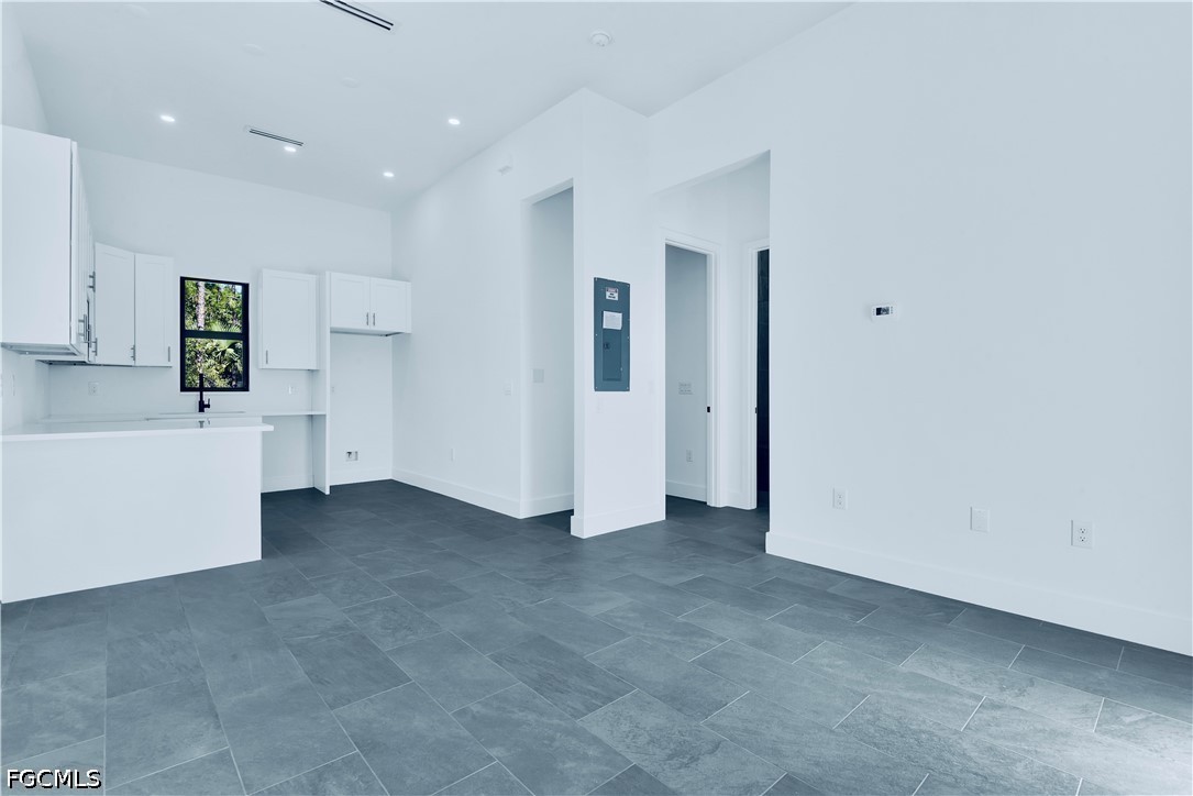 Stunning Modern Home with High-End Finishes Throughout! This beautifully designed home offers grand elevation, high ceilings, and 8-ft doors, creating an impressive and inviting atmosphere from the moment you enter. The open great room layout is enhanced by recessed lighting, premium fixtures, linear vents, and abundant natural light from impact windows and doors. The gourmet kitchen features attractive quartz countertops, soft-close shaker cabinets, stainless steel appliances, and a welcoming breakfast bar—perfect for cooking and gathering. The laundry room under air adds extra comfort and convenience. Retreat to luxurious bathrooms showcasing frameless tiled glass walk-in showers and admirable dual-sink floating vanities. Step outside to a desirable outdoor kitchen with quartz countertops & accent paneling, ideal for entertaining and enjoying the peaceful surroundings. Nestled away in a quiet area NOT IN FLOOD ZONE, this home offers comfort, privacy, and beautiful modern upgrades throughout. Schedule your showing today!