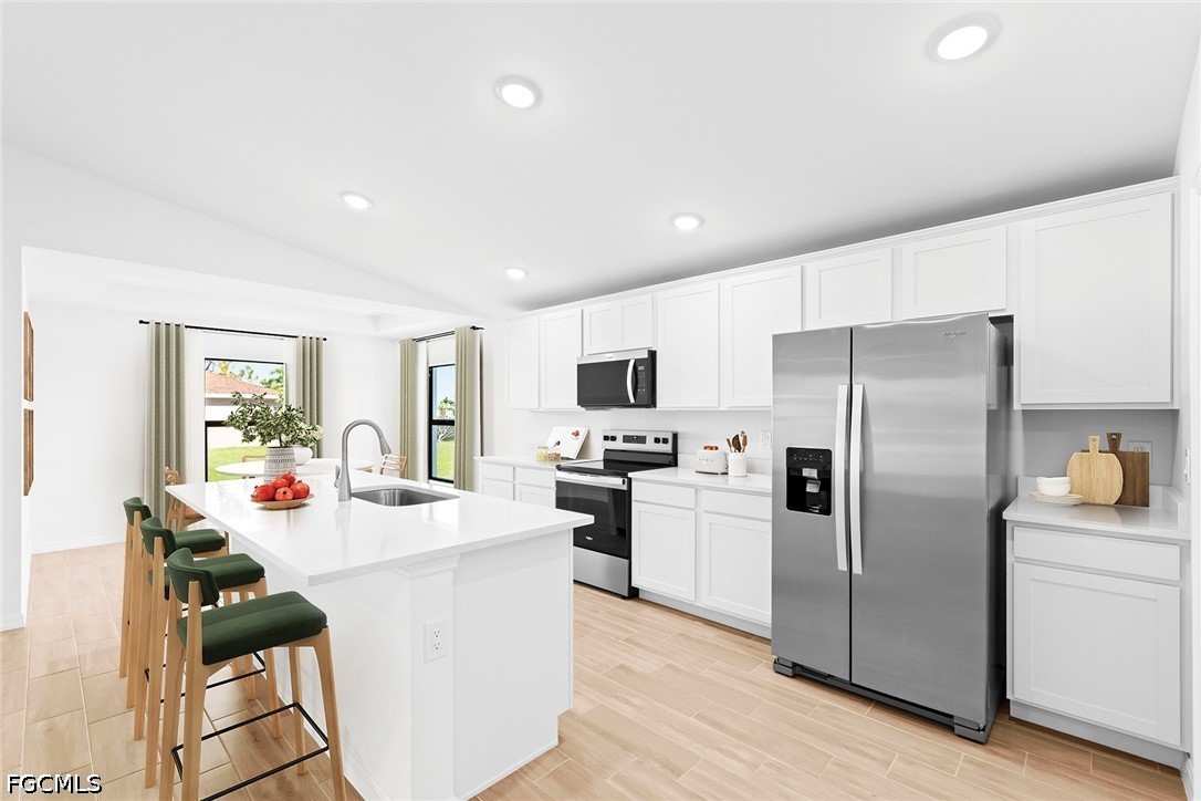 NEW CONSTRUCTION WITH WARRANTY- MOVE-IN READY! CITY WATER/SEWER HOMESITE – ALL ASSESSMENTS PAID! Eligible for 4.99% fixed FHA/VA financing. The Palm offers 1,550 square feet of thoughtfully designed living space. The spacious Great Room with its vaulted ceiling flows effortlessly to the private covered lanai—ideal for indoor-outdoor living and entertaining. At the heart of this open layout, the kitchen features a freestanding island, walk-in pantry, and designer cabinetry, opening to a bright dining area with a tray ceiling and abundant natural light. The primary suite includes a generous walk-in closet and a private bath with dual vanities, a tiled shower, and convenient linen storage. Additional highlights include upgraded plank tile throughout the main living areas, designer cabinetry & quartz counters in the kitchen and baths, hurricane-impact windows and doors, stainless steel kitchen appliances, and an attached two-car garage. Pictures, renderings, & virtual tour are of similar home & are used for display purposes only.