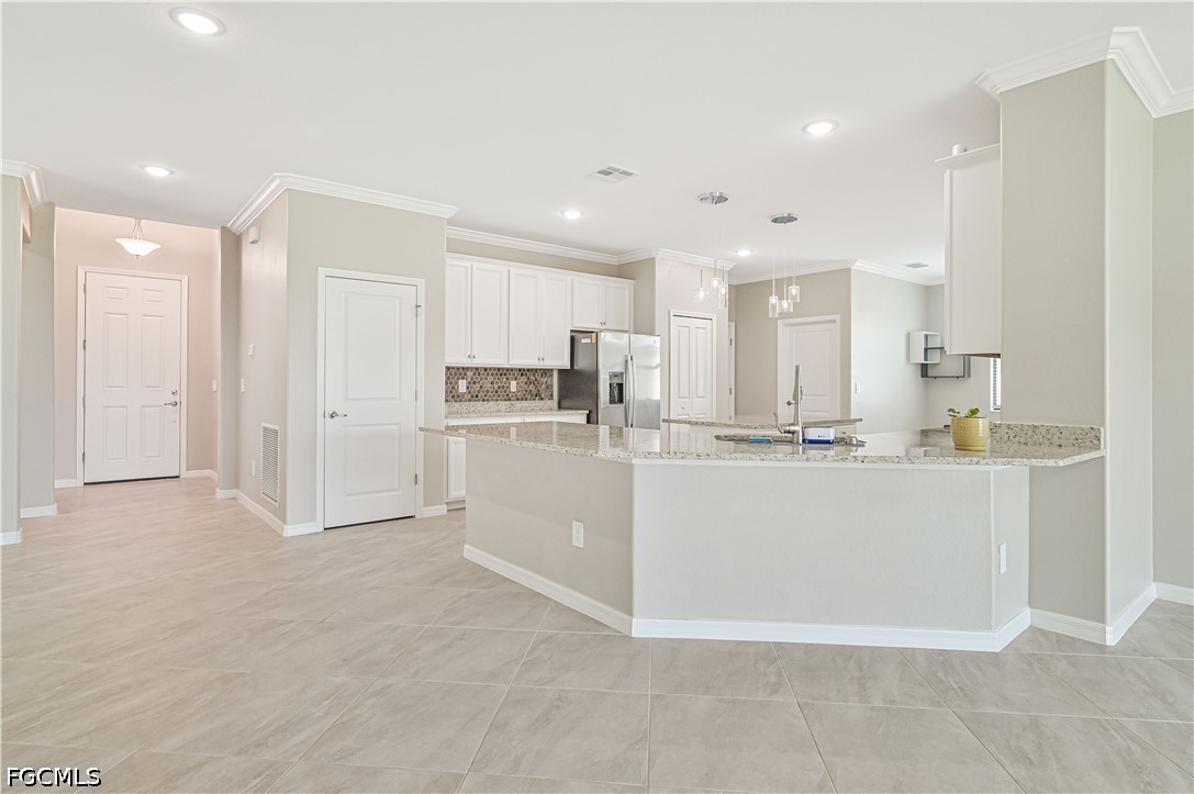Step into this thoughtfully upgraded 4-bedroom, 3-bath residence offering nearly 2,300 sq. ft. of refined living space. Perfectly positioned on an oversized lot with a serene partial lake view, this move-in ready home blends modern style with everyday comfort. The bright, white kitchen serves as the heart of the home, showcasing granite countertops, a spacious island, custom backsplash, and generous storage with custom closets in every bedroom. The beautifully renovated primary suite provides a relaxing escape, complete with a sleek glass-enclosed tile shower. Designed for both entertaining and daily living, the home features a formal dining room and an expansive screened lanai ideal for enjoying Florida’s indoor-outdoor lifestyle. A 3-car garage and numerous upgrades throughout add both convenience and value, while the property’s location outside a flood zone offers added peace of mind. Situated in the gated community of Portico, residents enjoy resort-style amenities and low HOA fees that include lawn care—making it easy to embrace a low-maintenance, Florida lifestyle. Don’t miss the opportunity to make this exceptional home yours—schedule your private showing today!