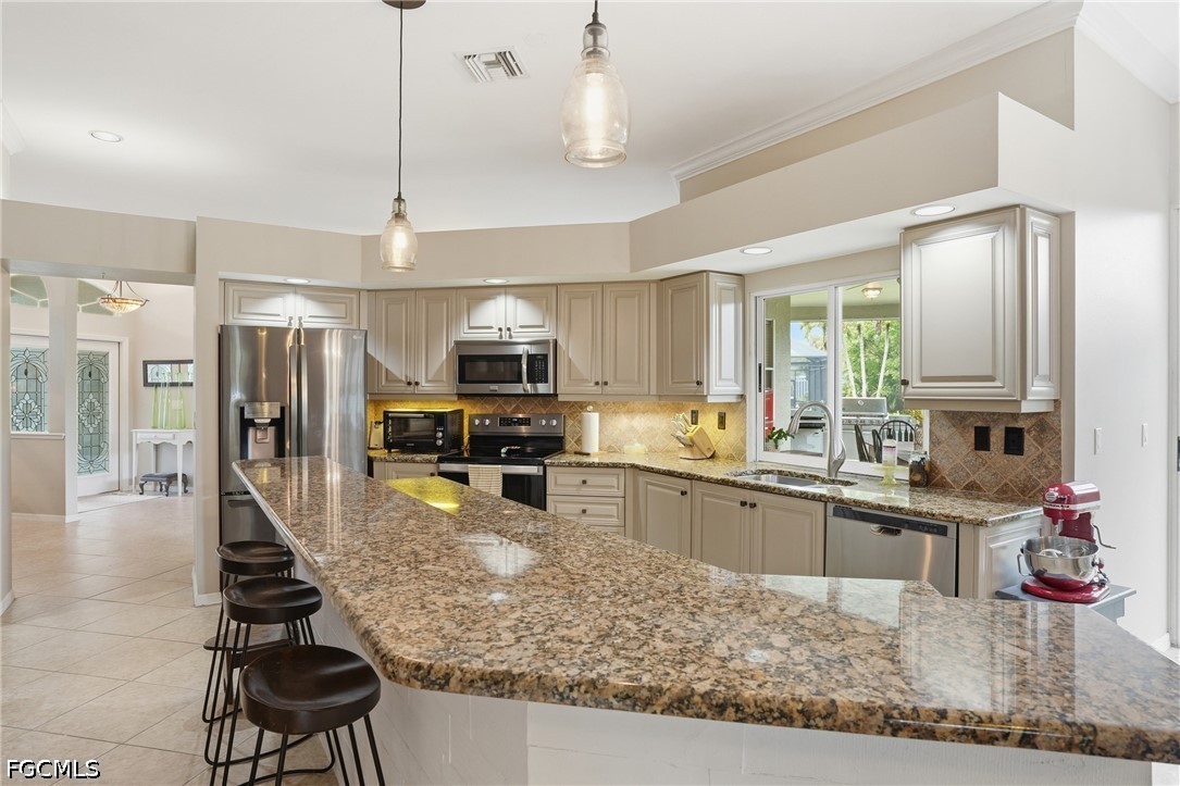 This beautiful home offers an exceptional opportunity for buyers seeking space comfort and classic Florida living. With 4 bedrooms + den and 2.5 bathrooms spread across approximately 2,650 square feet, this home showcases a well-designed floor plan with a desirable split layout that provides privacy and functionality. The heart of the home is the gorgeous kitchen featuring granite countertops rich wood cabinetry and high-end stainless steel appliances that complement both casual meals and entertaining alike. Bright and open living spaces flow naturally from room to room creating an inviting atmosphere and abundant natural light enhances every corner. The primary suite is a true retreat having a spacious bathroom with a jetted tub, dual sinks and a large shower, while sliders allow easy access to the expansive covered lanai perfect for morning coffee or evening relaxation. Outside enjoy the oversized corner lot with beauiful landscaping and plenty of outdoor space for gardening, entertaining or future pool. Located in a desirable community with easy access to major roadways, shopping, dining and recreational amenities, this property blends comfortable living with everyday convenience. Whether you’re looking for room to grow or a place to create lasting memories, this home delivers thoughtful details quality upgrades and an exceptional value for buyers ready to make it their own.