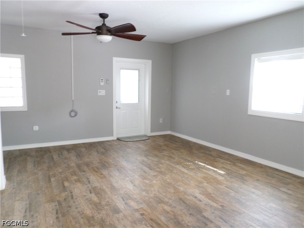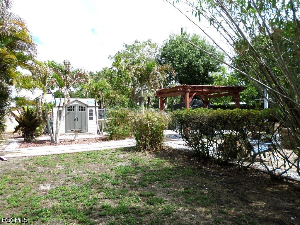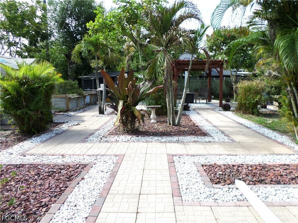 Beautiful spacious 3-bedroom home & a full updated bath. Open floor plan that flows from the kitchen into the dining area. Or can be a Livingroom. Large family room off from the kitchen & that goes out back to the courtyard area. Ceramic tile, luxury wood flooring & carpeting throughout the home. Beautiful, oversized paved back yard with pergola, fire pit with separate seating area, basketball playing area & a vinyl shed for storage. There is an outside cage for a pet or storage. Palm trees, mango fruit tree, plants & an area for you to add to the vegetable garden. Fenced & gated yard with cement driveway. Attached double carport with extra parking space for vehicles or a boat. Storm shutters with keys for extra protection from storms. There is a metal roof on the home.