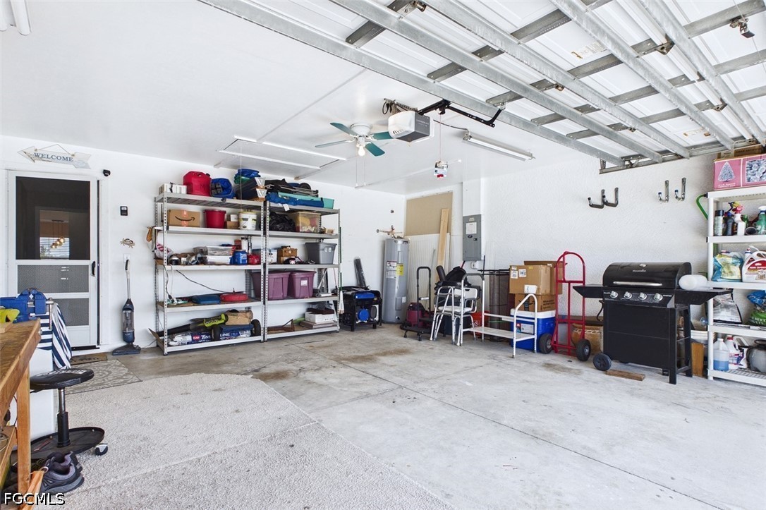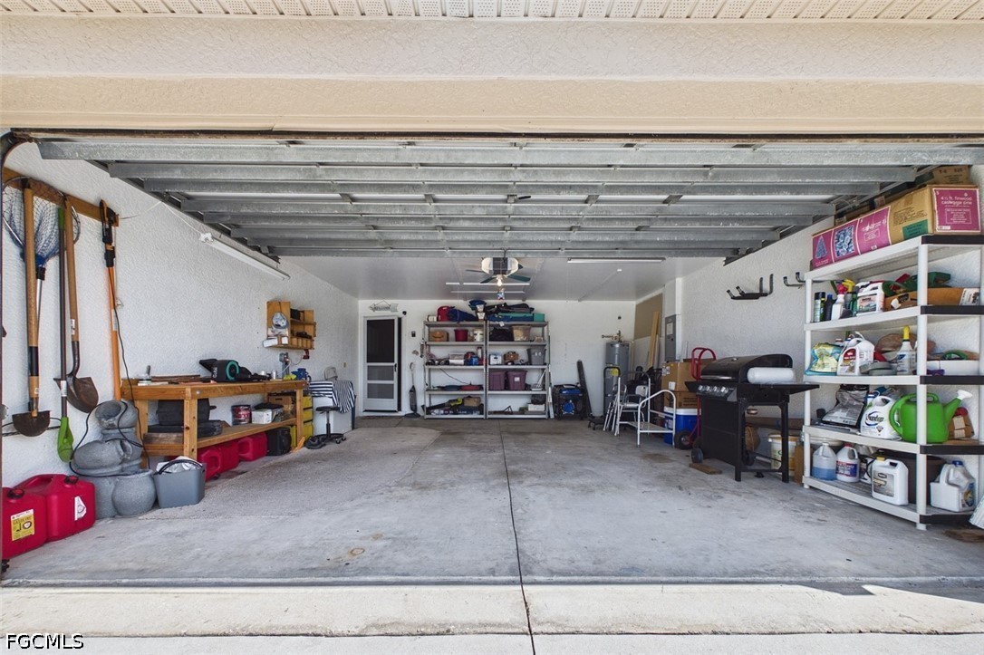 Welcome to Northwest Cape Coral living at its finest! This beautifully maintained Adams Homes offers 4 bedrooms, 2 bathrooms, and 2,246 sq ft under air, designed with a spacious open floor plan perfect for both everyday living and entertaining. From the moment you arrive, the inviting covered front porch sets the tone for what’s inside. Step through the entry into a bright, open living space where the walk-around kitchen flows seamlessly into the main living area, creating a warm and connected feel throughout the home. The versatile layout includes a spacious living room and a flexible bonus area currently used as a dining room and office—ideal for a den, home office, or flex space to suit your needs. The eat-in kitchen truly serves as the heart of the home, featuring a breakfast bar, pantry, and plenty of room to gather with family and friends. The primary suite is a private retreat, offering a custom dual-sink vanity with granite countertops, an oversized 46x58 walk-in shower with gorgeous tile, private water closet and two generous walk-in closets. Three additional bedrooms are thoughtfully positioned on the opposite side of the home, providing privacy for family or guests, along with an updated guest bathroom with tub and shower. Step outside and unwind on the 14x16 screened lanai under truss perfect for enjoying Florida evenings year-round. This home is packed with valuable upgrades and peace-of-mind features, including a 2023 shingle roof, 2025 water heater, A/C (2015) with newer motor, newer extended-depth well pump, whole-house reverse osmosis system, automatic sprinkler system, a 2-car garage complete with workbench and shelving, and a 10KW generator with exterior panel and 50-amp breaker. Blink and Lorex security camera systems are also included. Hurricane protection is already in place with 7 impact-resistant windows and 8 additional windows equipped with shutters. Most furnishings, linens, kitchenware, small appliances, BBQ grill, and household items are included, making this home nearly turnkey and ready for immediate enjoyment. (Guest bedroom mattress and living room TV excluded. Located outside of a flood zone and offering a history of no flooding, this property also includes access to a transferable, low-cost flood insurance policy—an added benefit for long-term peace of mind.