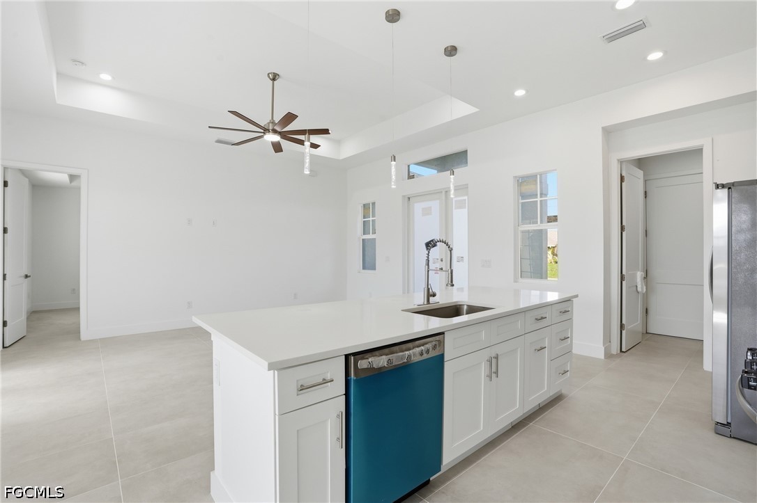 Welcome to your dream oasis in the heart of the up-and-coming NE Cape Coral! This exquisite 3 bedroom, 2 bathroom home offers a perfect blend of modern luxury and serene waterfront living. Nestled along a freshwater canal with WESTERN EXPOSURE and NEWER SEAWALL IN PLACE, perfect for enjoying our beautiful sunsets, this residence offers beautiful canal views, giving the perfect opportunity to relax and unwind in your private backyard paradise. From the moment you enter the home through your dramatic and elevated entryway, you are greeted by tray ceilings, porcelain wood-look tile and upgraded finishes, adding a touch of sophistication to the spacious living areas. Picturesque waterfront views are easily embraced through almost every room in the home, including your oversized under-truss lanai! Hurricane windows and doors throughout, offering safety, security and energy efficiency! Located in a rapidly growing NE Cape Coral neighborhood, you’ll experience the perfect balance of tranquility and convenience. Offering easy access to shopping, dining, entertainment, Pine Island Rd and US-41, this is the perfect residence to call home in SWFL!