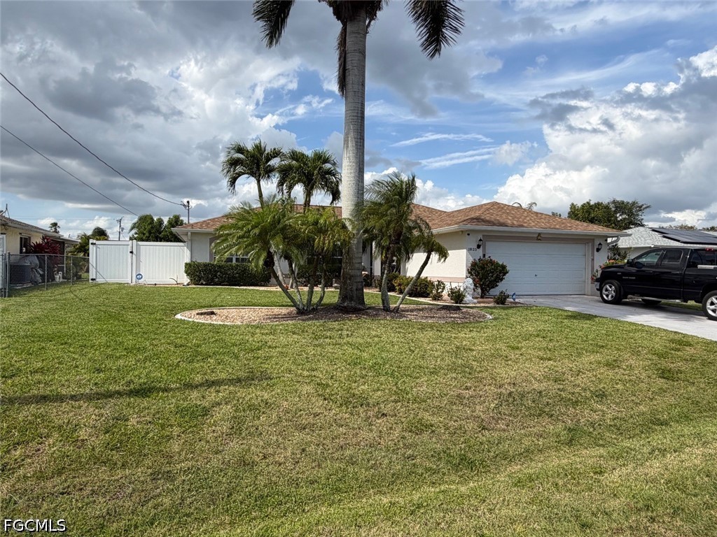 Beautifully renovated 3-bedroom, 2-bathroom home nestled in one of Cape Coral’s most desirable neighborhoods—no flood insurance required. This move-in-ready residence showcases brand-new tile flooring throughout and fully updated kitchen w/stainless Steel Appliances. The stunning kitchen is complete with stylish cabinetry, upgraded countertops perfect for both everyday living and entertaining. Step outside and embrace the Florida lifestyle on the screened lanai, Large Elite Roof and terrace with elegant paver flooring, overlooking a private, fully vinyl fenced backyard and a new sparkling pool with salt system—ideal for relaxing or hosting guests year-round. Additional highlights include a spacious 2-car garage, a newer roof, a new water heater and sprinkler system for your peace of mind. The home has been freshly painted inside and out, complemented by refreshed landscaping that enhances its curb appeal. An alarm system including some cameras and full house reverse osmosis water system gives you peace of mind with security and great bathing and drinking water. The back yard has Avocado, banana, Guanabana, Papaya, Java and Rosemary for your picking and enjoying. Conveniently located near shopping, dining, and top-rated schools, this exceptional home offers the perfect blend of style, comfort, and location.